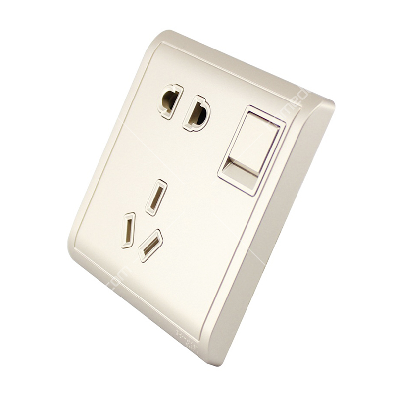 系列 : 优雅 | 颜色 : 金色 | 类型 : 插座面板 | 尺寸 : 86×86mm | 材质 : 钢支架 | 规格 : 10A五孔插带开 | 额定电流 : 10A